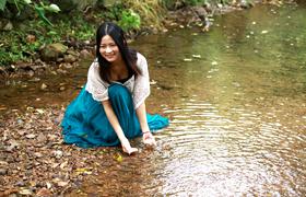 美女喜水