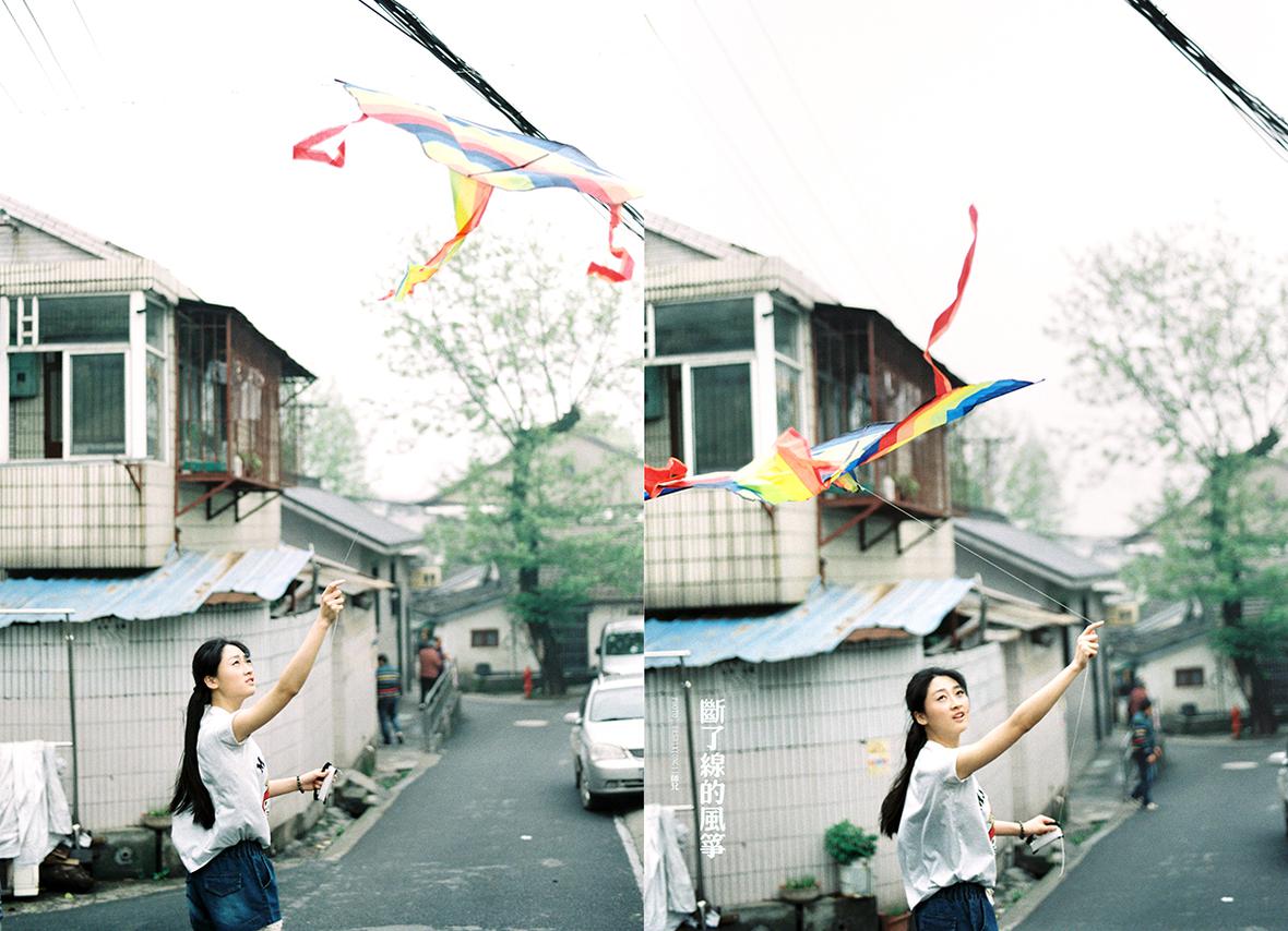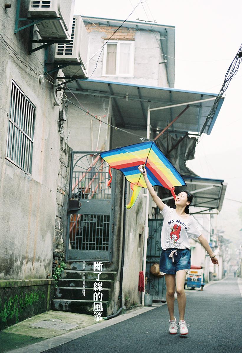 当我拿着风筝在小巷子奔跑的时候