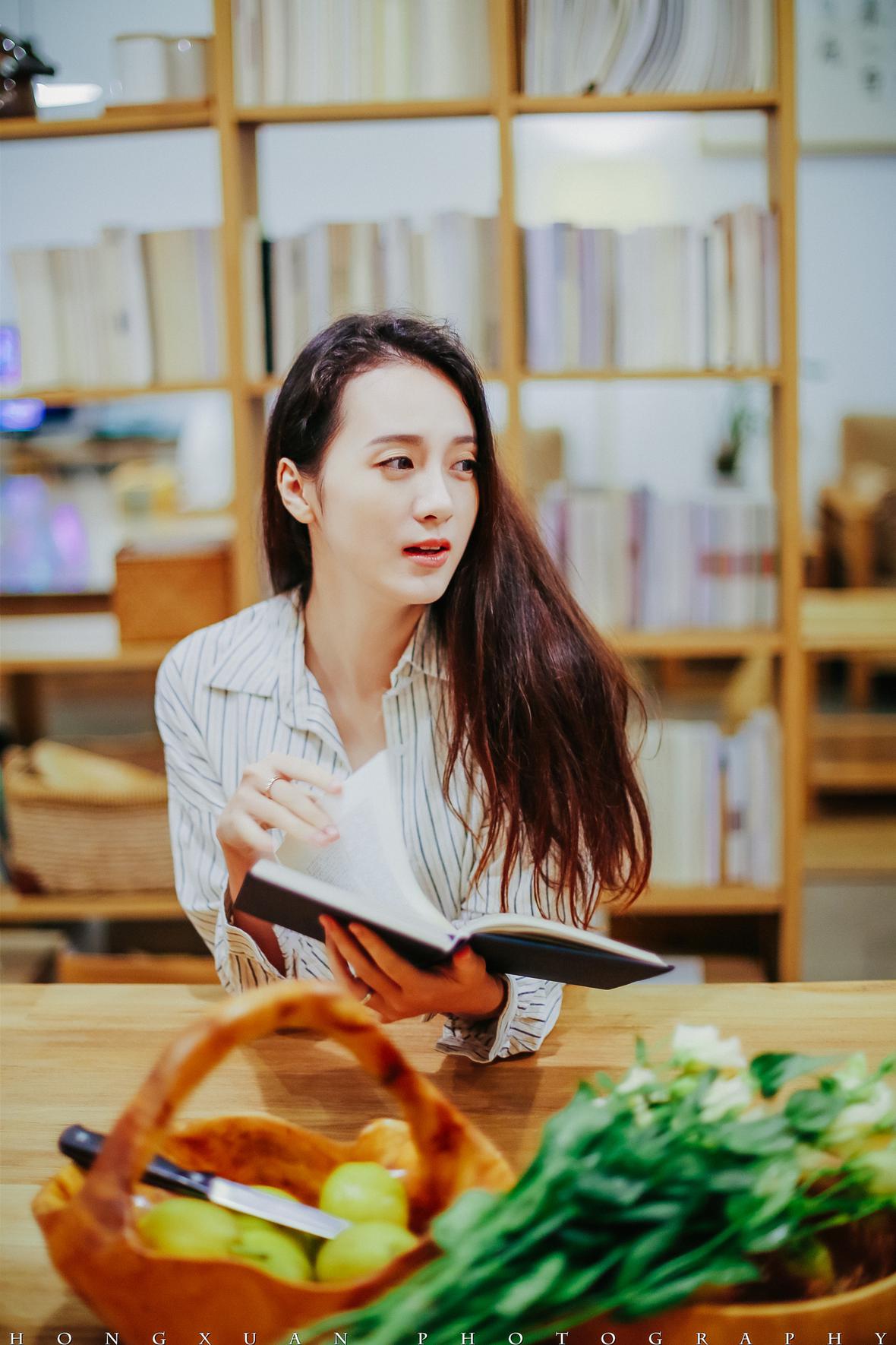 客厅有一张大大的木桌,两条长凳,高矮正合适朋友小聚围坐聊天,vicky一手拿着我的书一手拿着一个小梨子,小口小口吃起来。