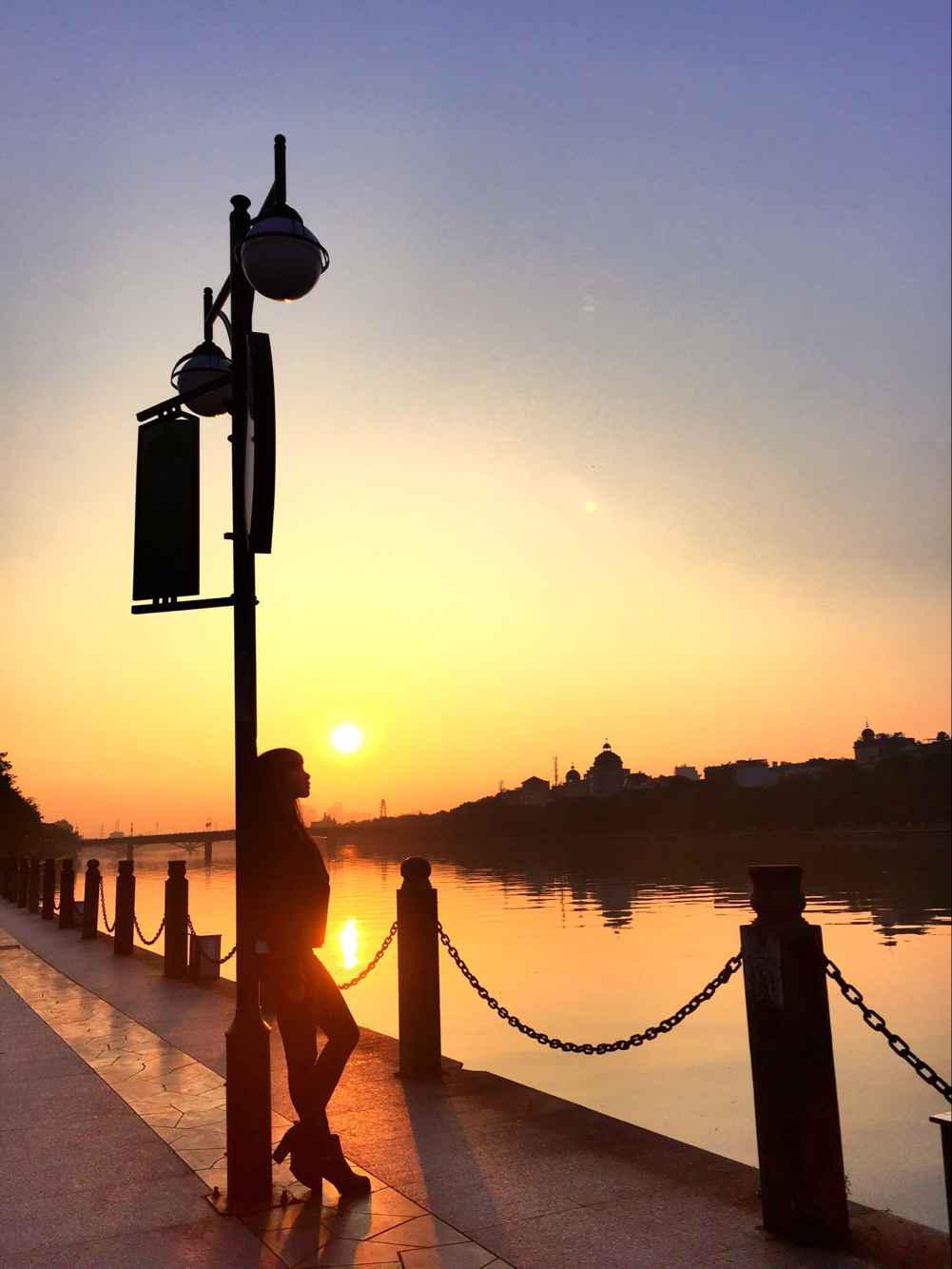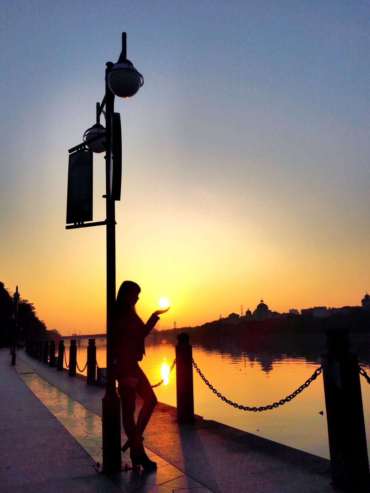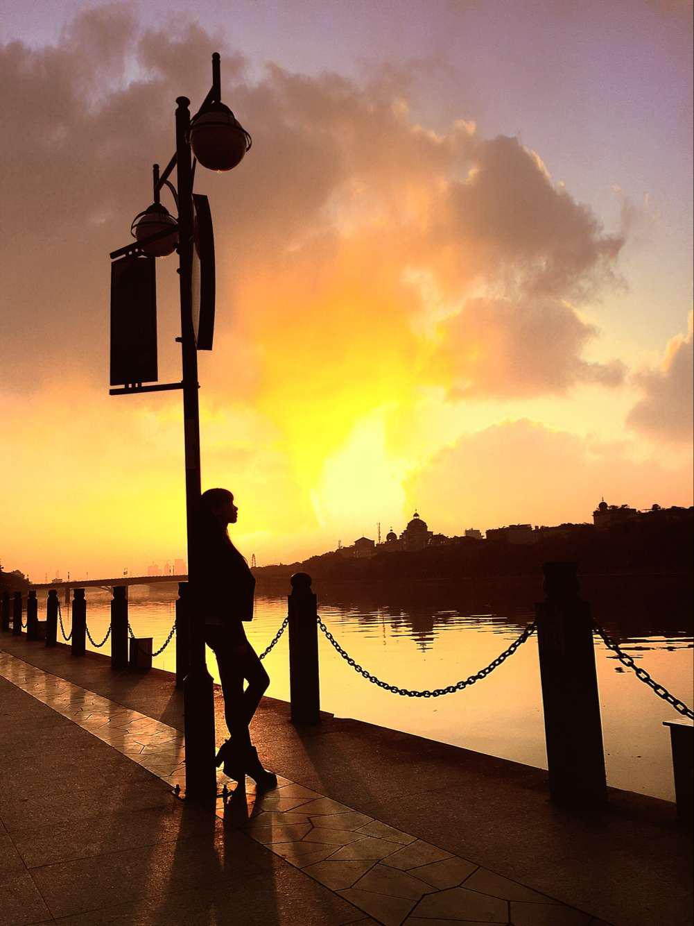 手机摄影-佳人相伴,夕阳无限