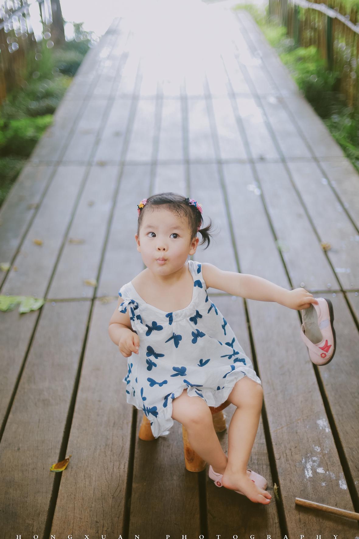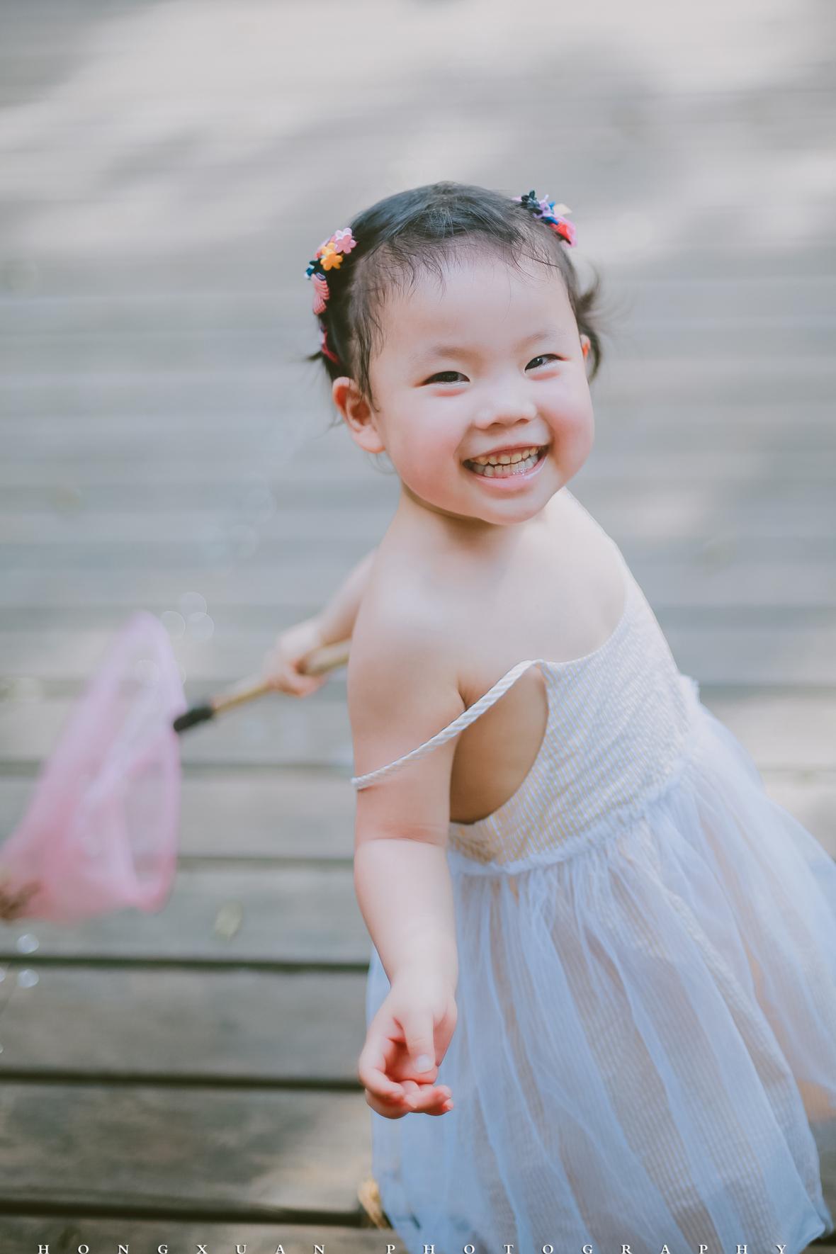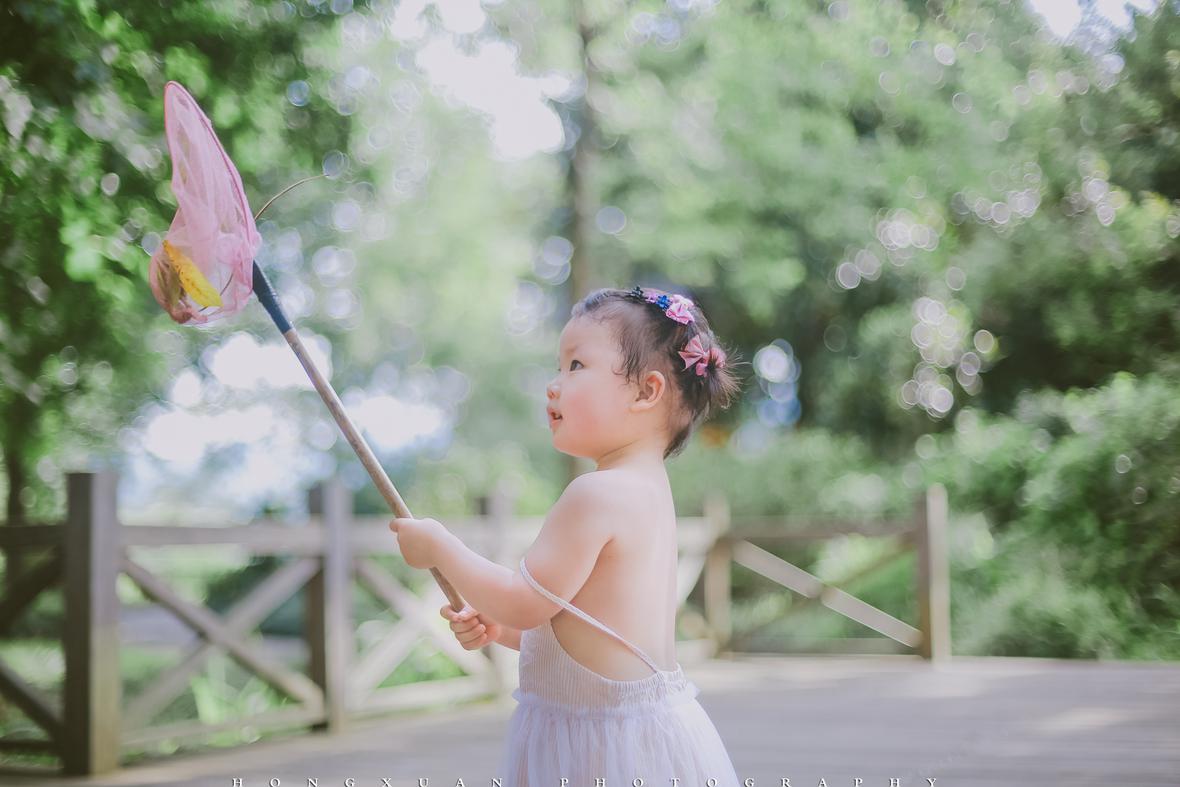 两岁的初五高举着蝴蝶网兜,追着妈妈的脚步跑起来,一边跌跌撞撞,一边嚷嚷着:“麻麻,麻麻你等等我呀……麻麻,麻麻我赶不上你了,麻麻……哎呀,总算是追到你了。”