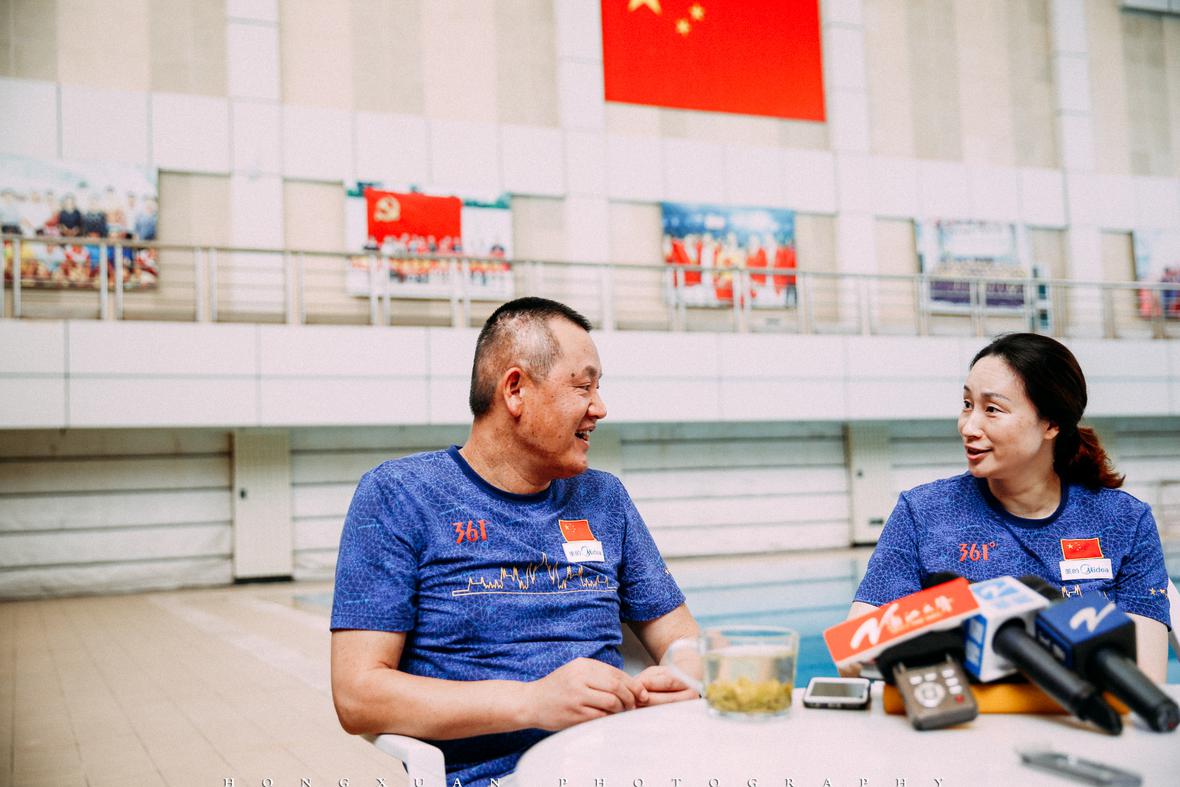 跟汤汤一起去学院,采访徐国义指导和楼霞教练,为这一双泳池畔的夫妻档做个专访。她负责文字,我负责摄影。
