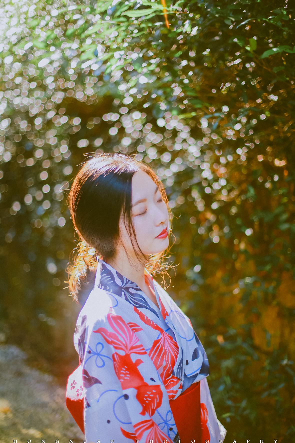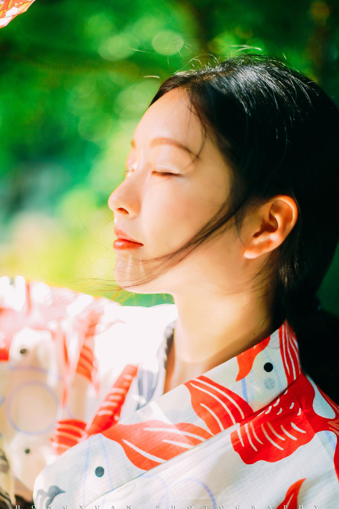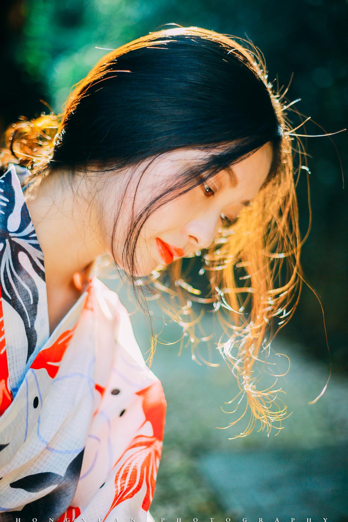 拍照那天,秋高气爽,阳光正好。我为露露化了一点点眼影,阳光下,朱唇半启,眉目如画。