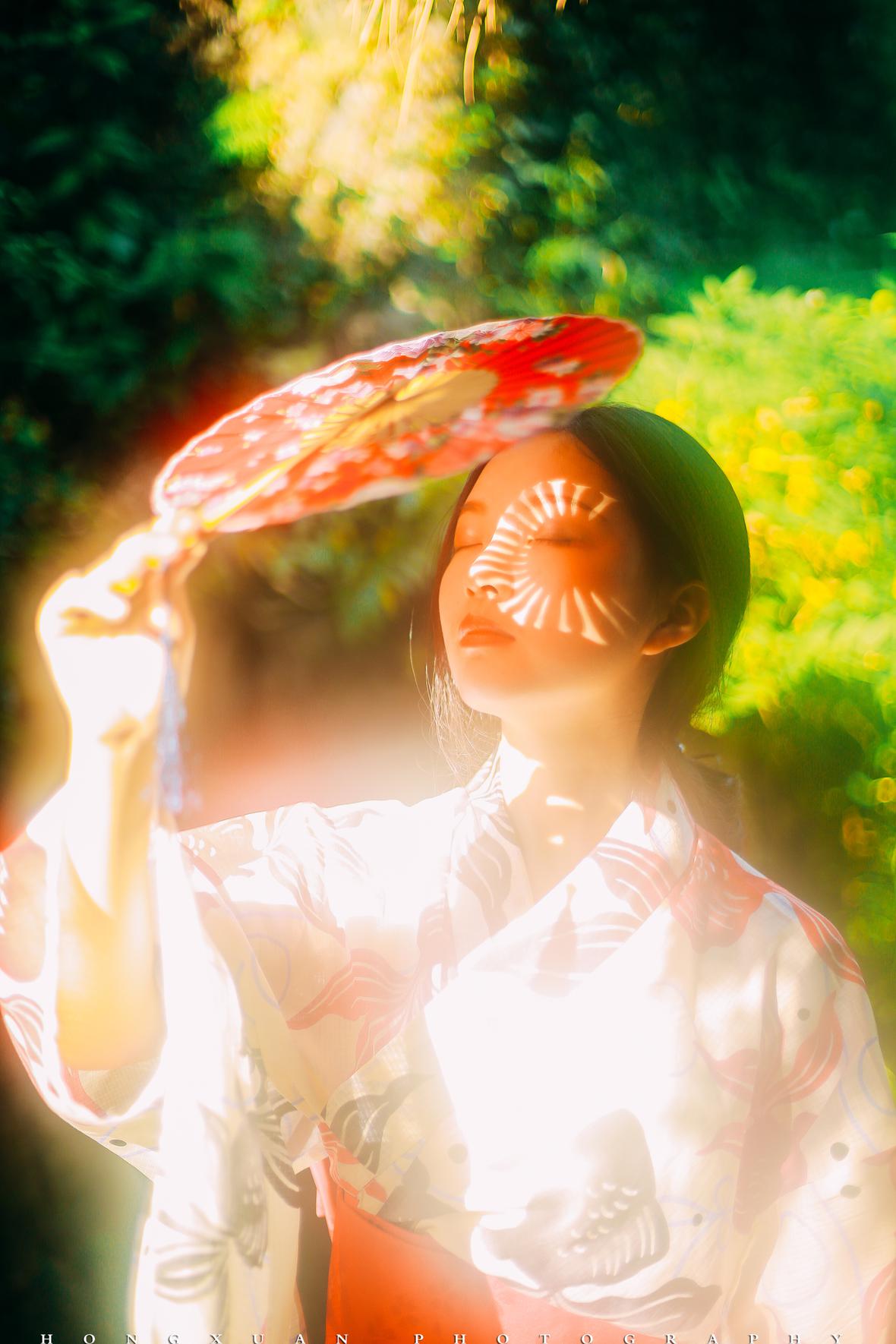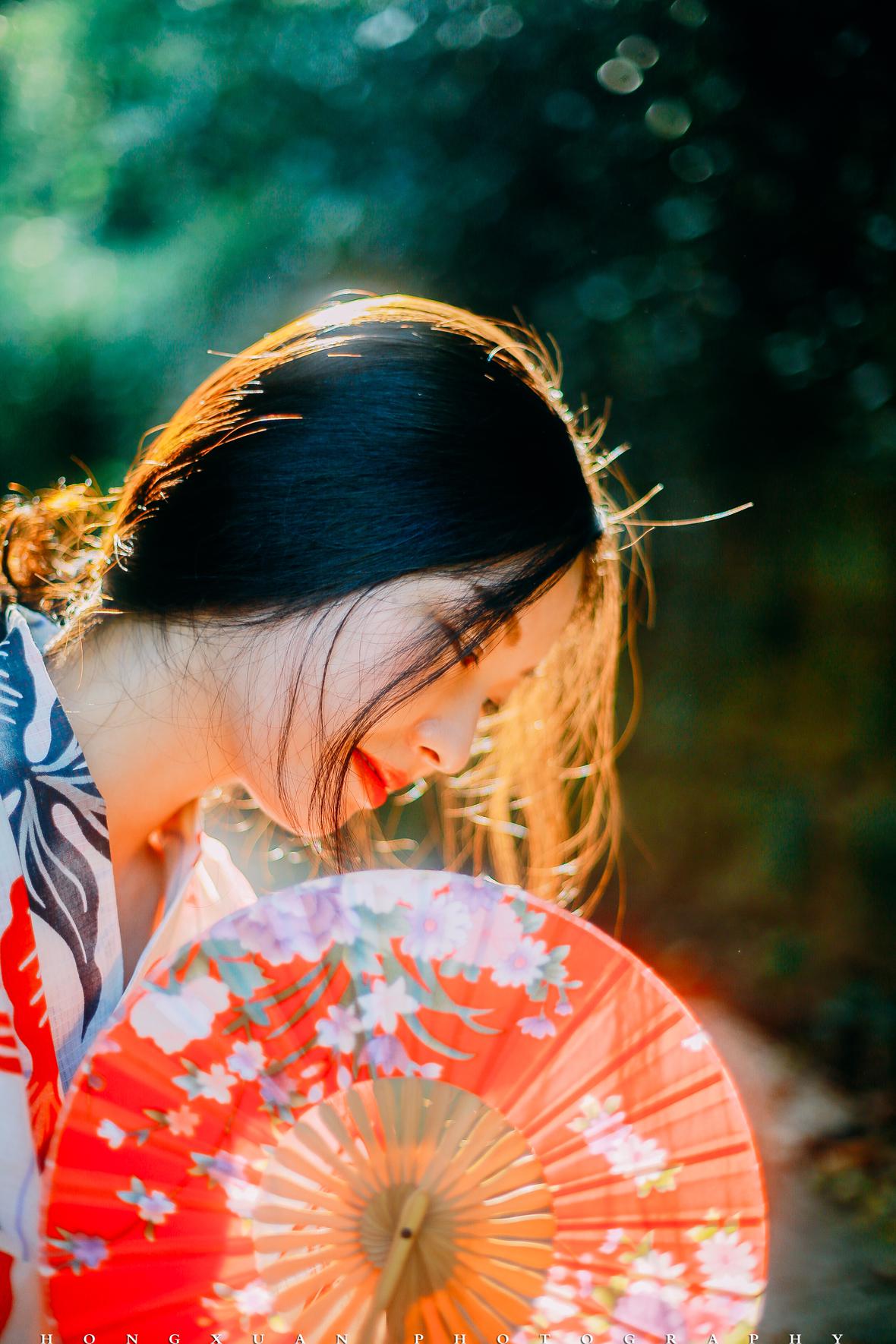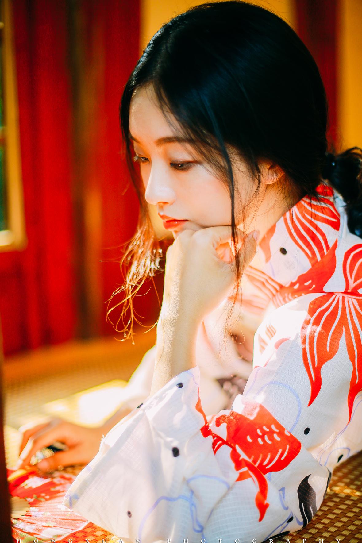 拍照那天,秋高气爽,阳光正好。我为露露化了一点点眼影,阳光下,朱唇半启,眉目如画。
