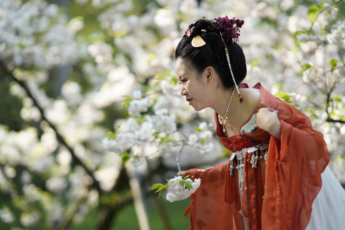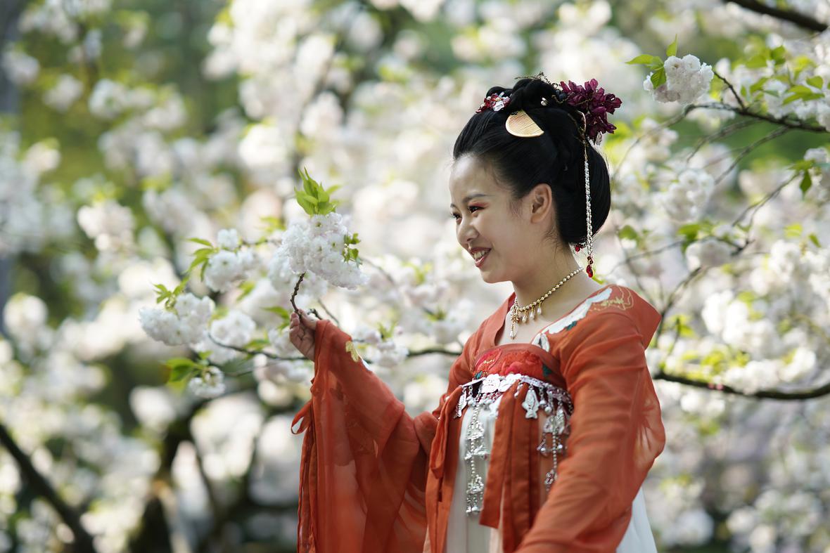 乌龟潭畔樱花季节拍美眉