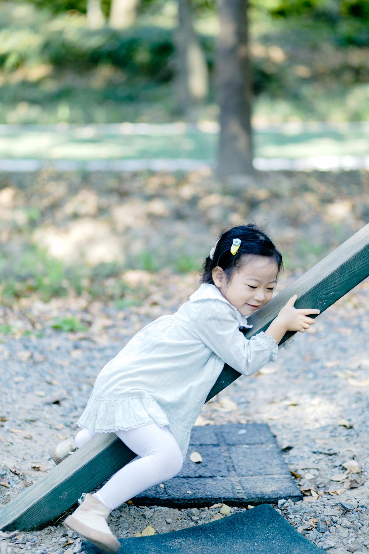然而,菲比是个特别谨小慎微的宝宝,自幼表现出来大运动不佳,这一点,让阿科很是沮丧。