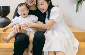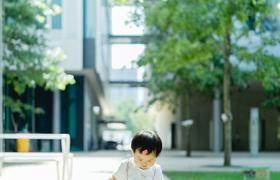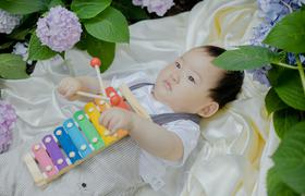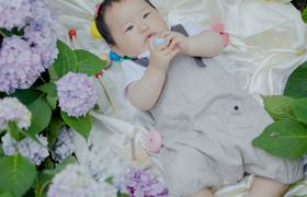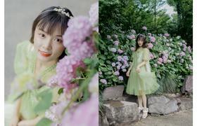 绣球花丛里的小朋友