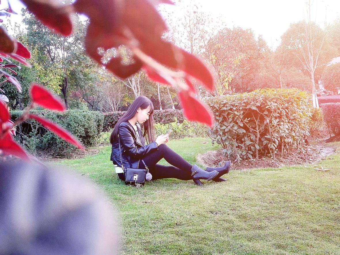 手机摄影-佳人相伴,夕阳无限