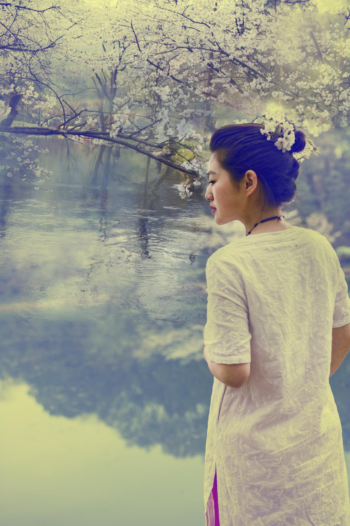 女人本该就如这春花般美好的,有活得热情奔放如红玫瑰般,也有温文尔雅如白玫瑰的。再见娟子已是相隔一年之久,我跟她除拍摄之外并不熟悉。尽管她跟去年一样又是着一袭白衣,言谈间给我能感觉到川妹子的明快性子,颇有一番红玫瑰的风采。