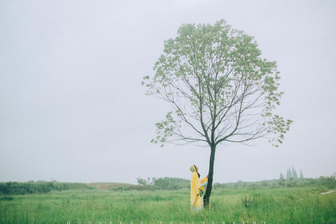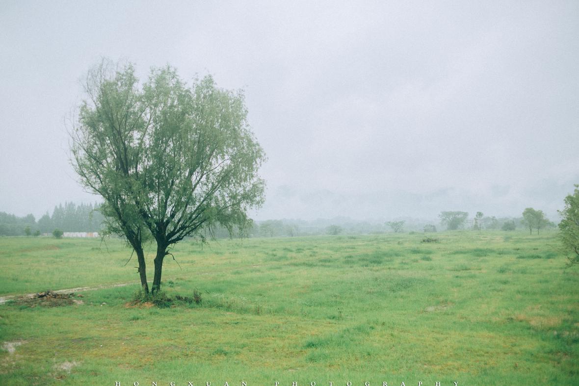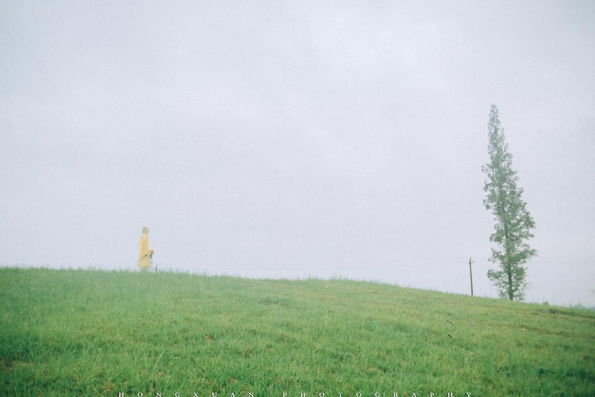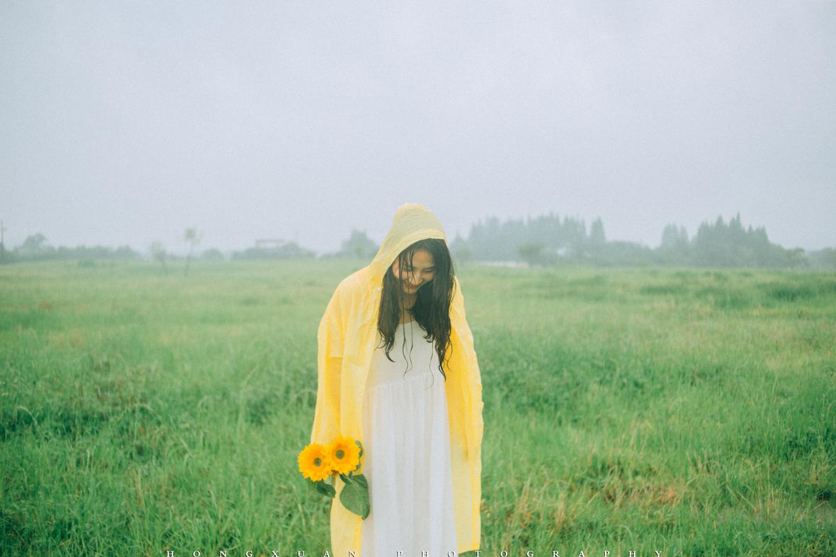 到了目的地,看着瓢泼大雨的车外,两个人躲在车里像蝗虫一样啃了一些零食,最终心一横,还是出去拍照吧。