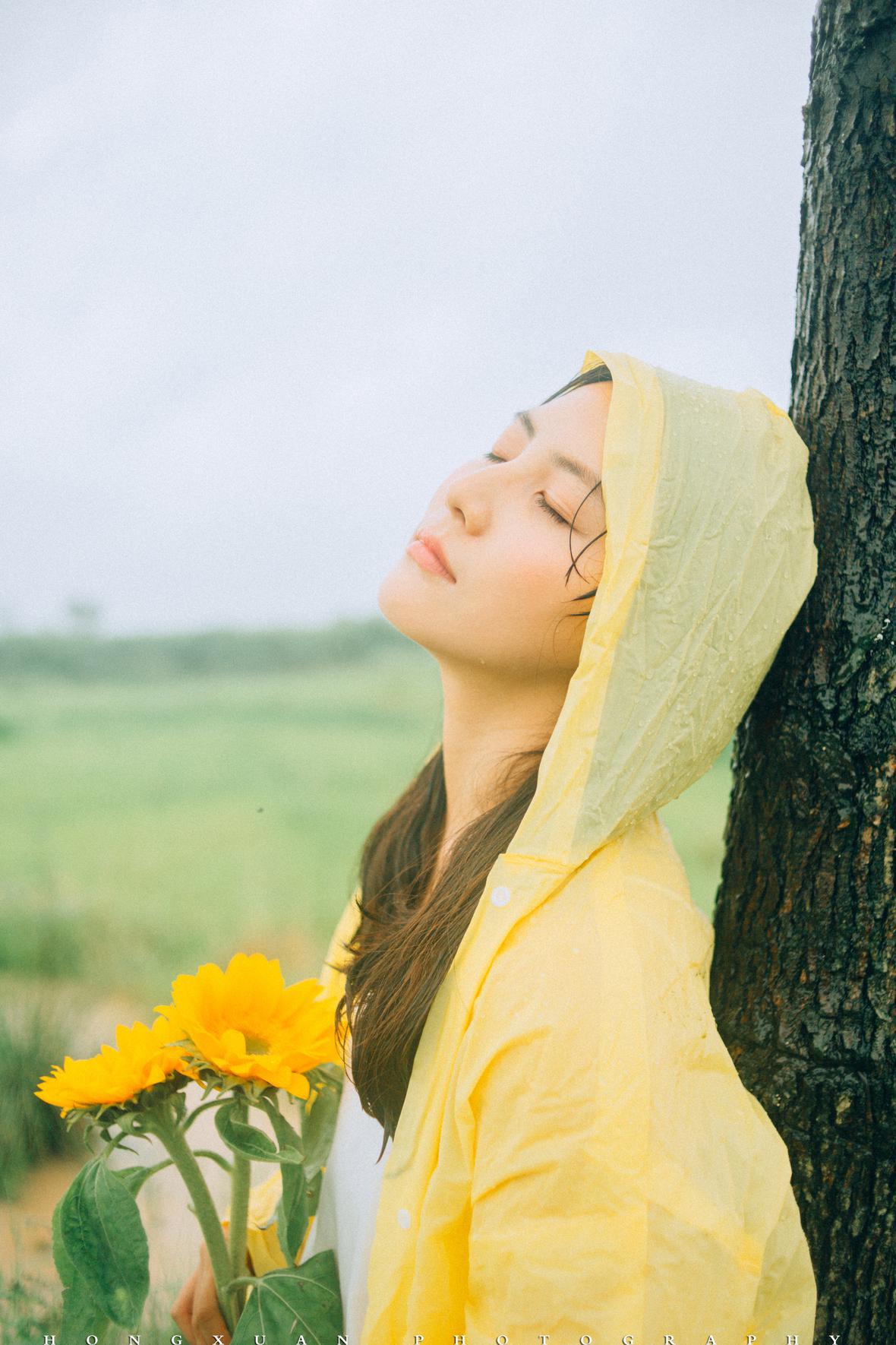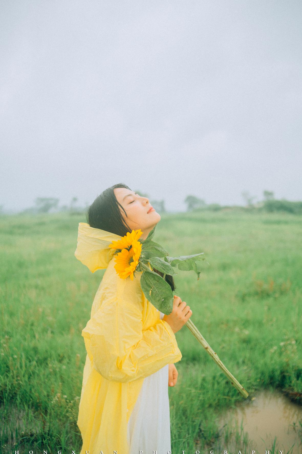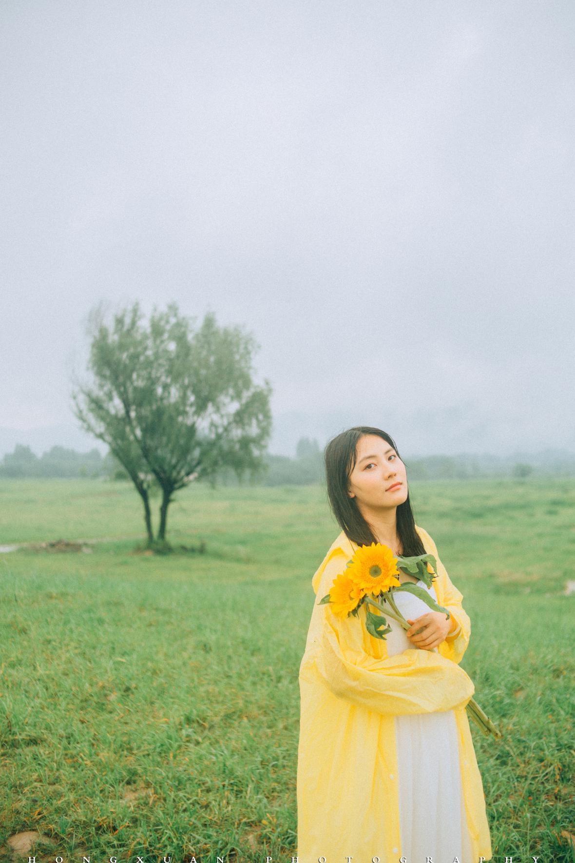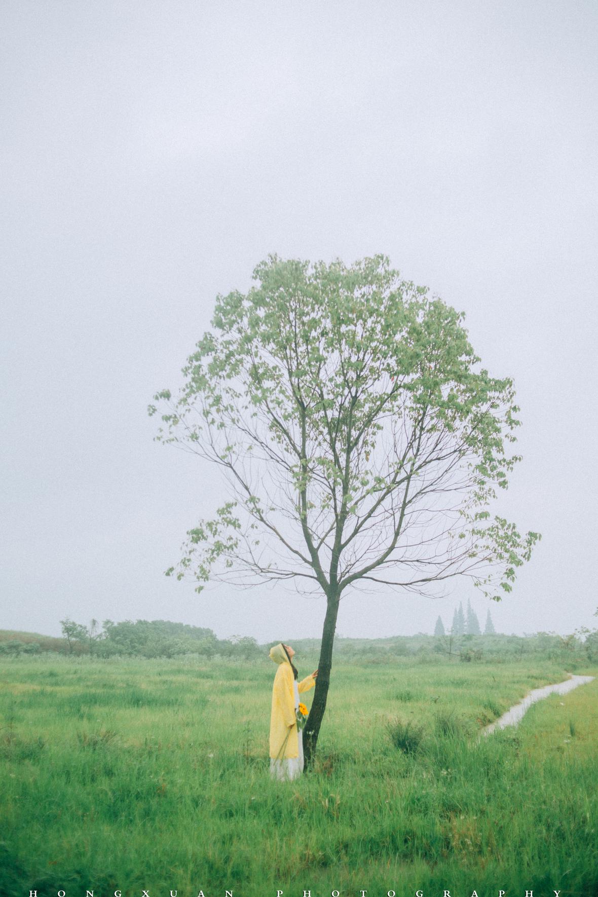 到了目的地,看着瓢泼大雨的车外,两个人躲在车里像蝗虫一样啃了一些零食,最终心一横,还是出去拍照吧。