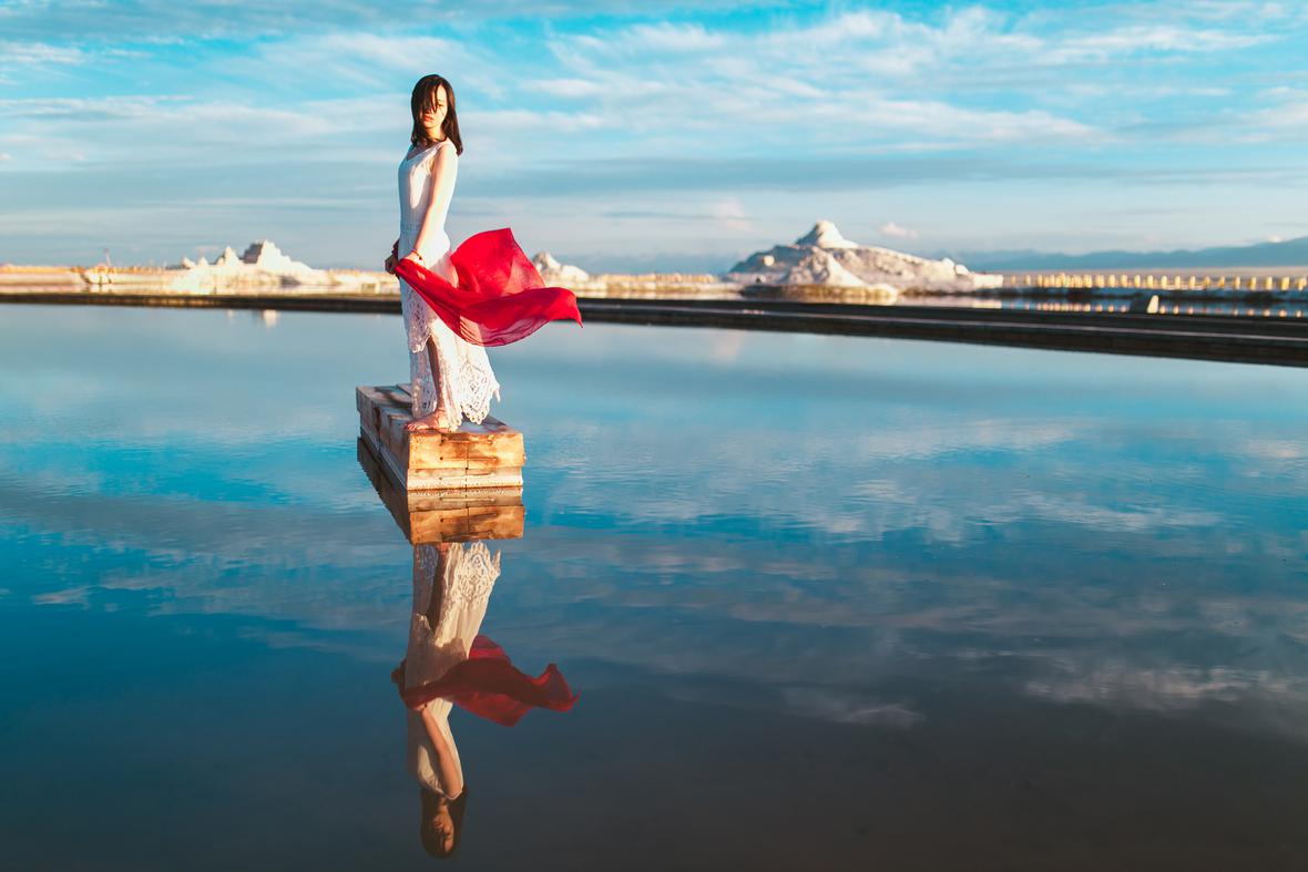 连日的大雨让我们到茶卡的时候看到的是一片发黄的湖水……
