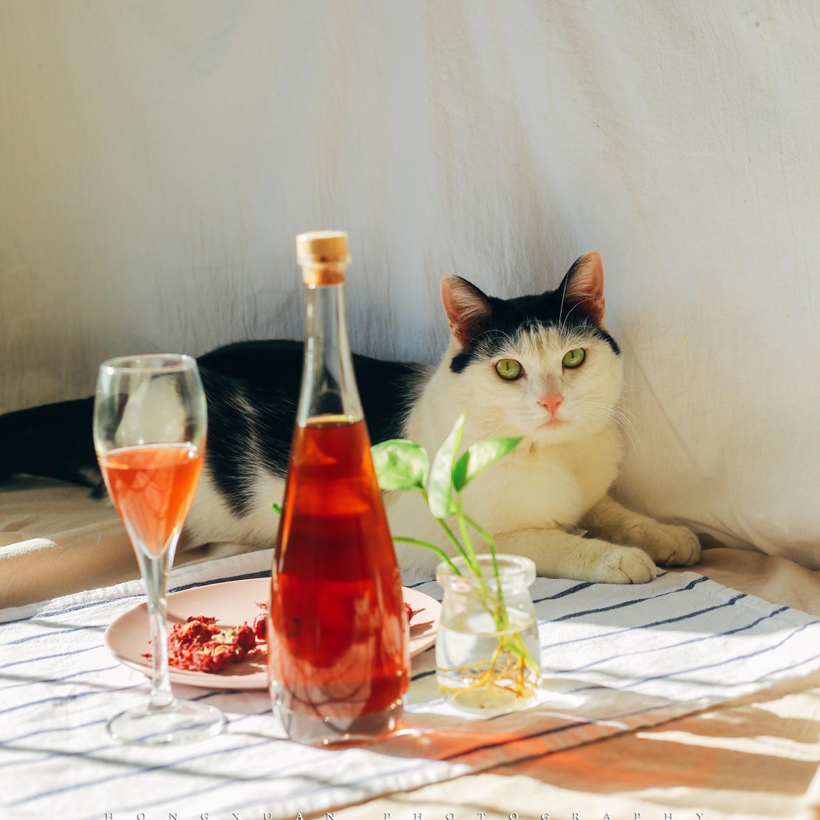 那日我就着下午正好的阳光拍酒瓶子玩,他或是贪一晌的温暖,凑了过来。原本我还觉得有趣,索性多按了几下快门。