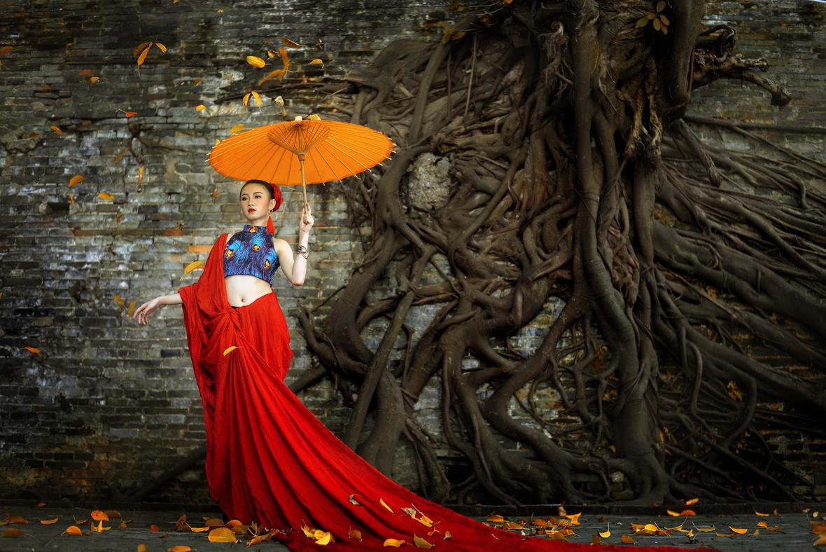 红裙古墙