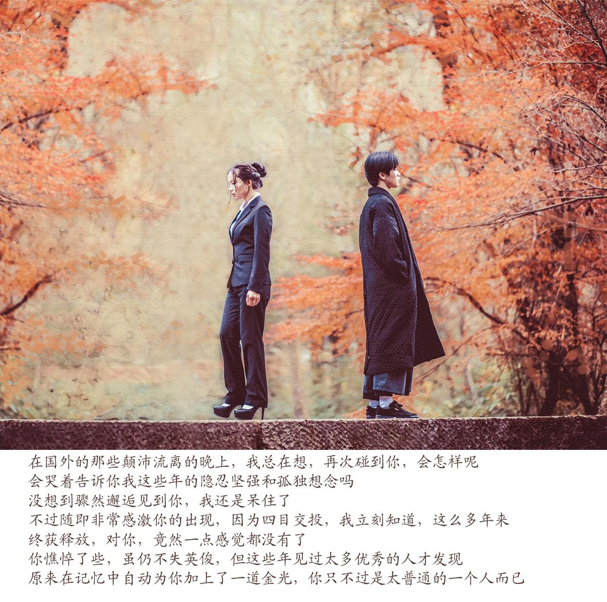 当时正值九溪红叶最盛的时候,而我正看到亦舒师太的《那个男人与那封信》,于是将几个主人翁改编成文中的故事,当然也篡改了结局