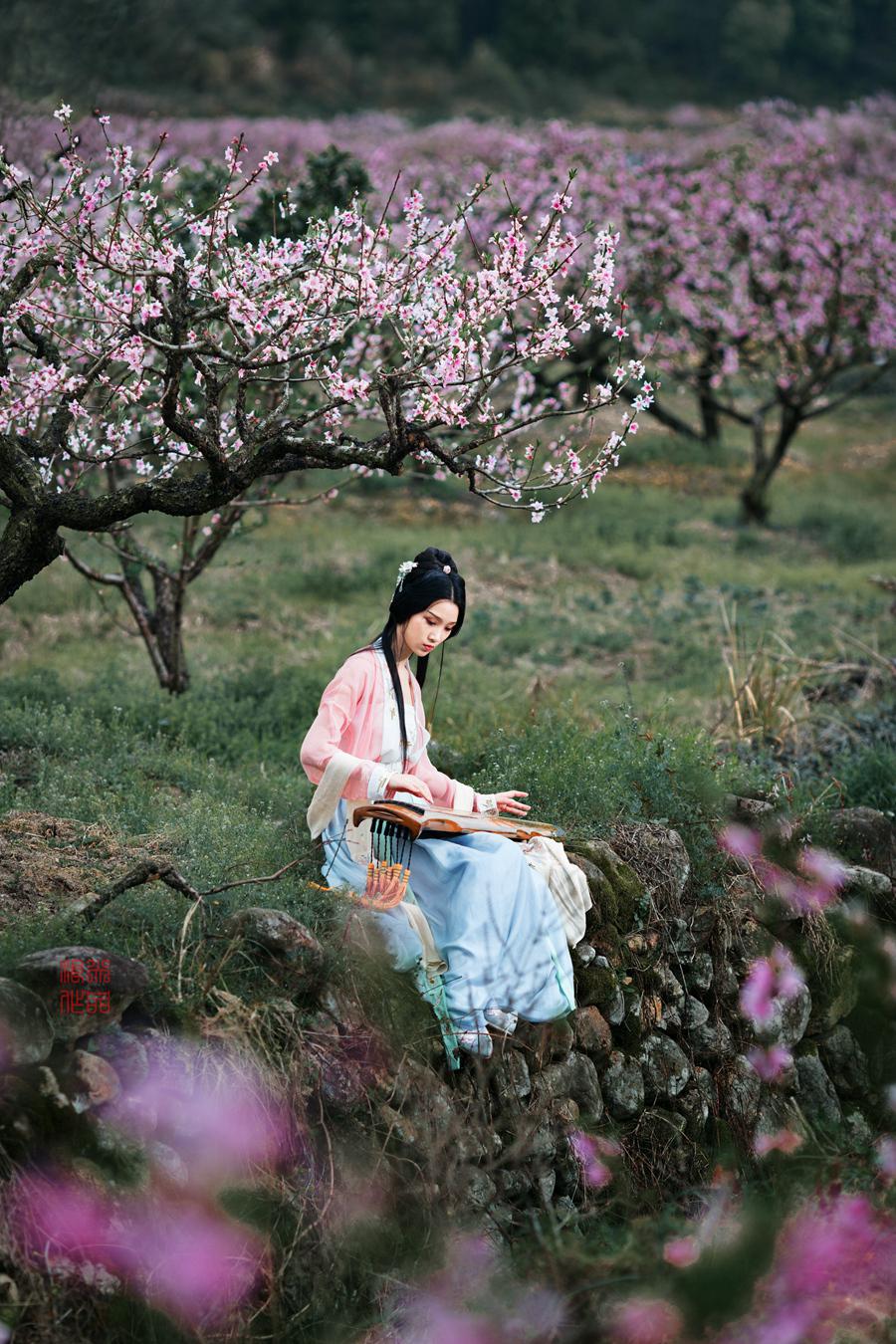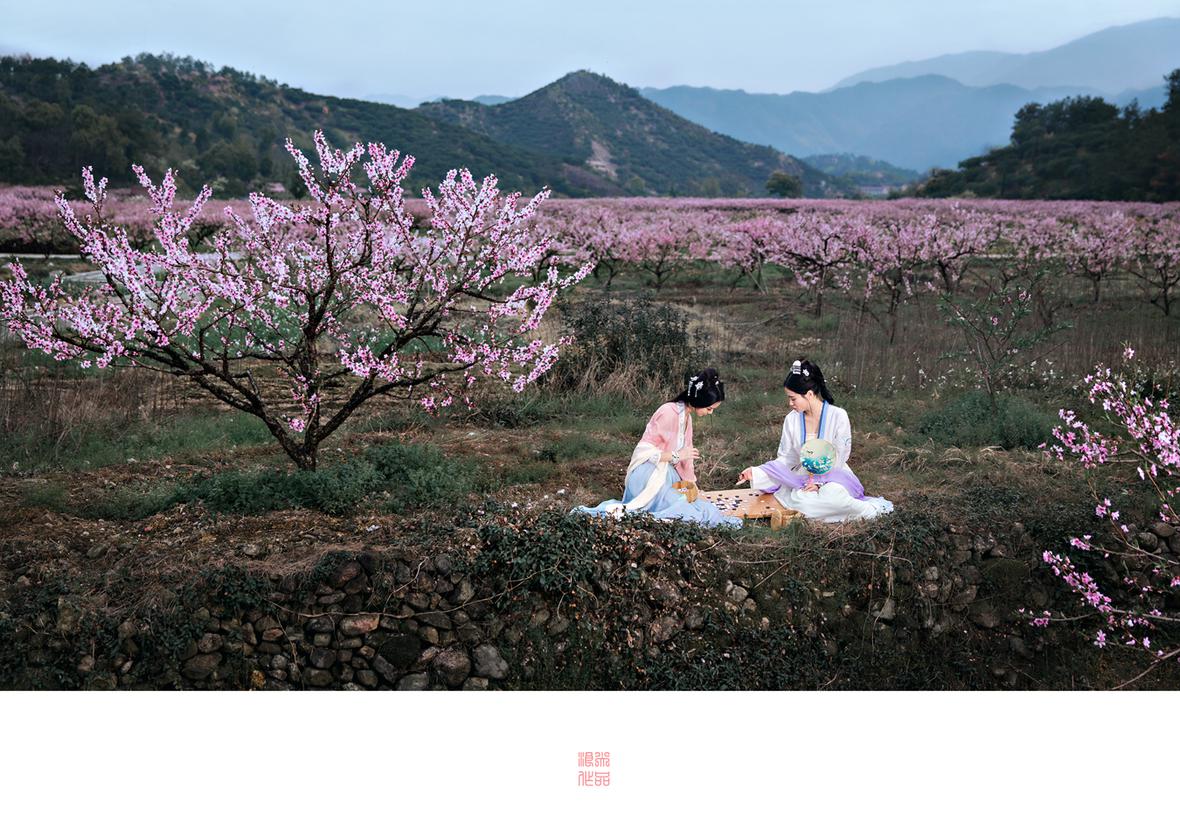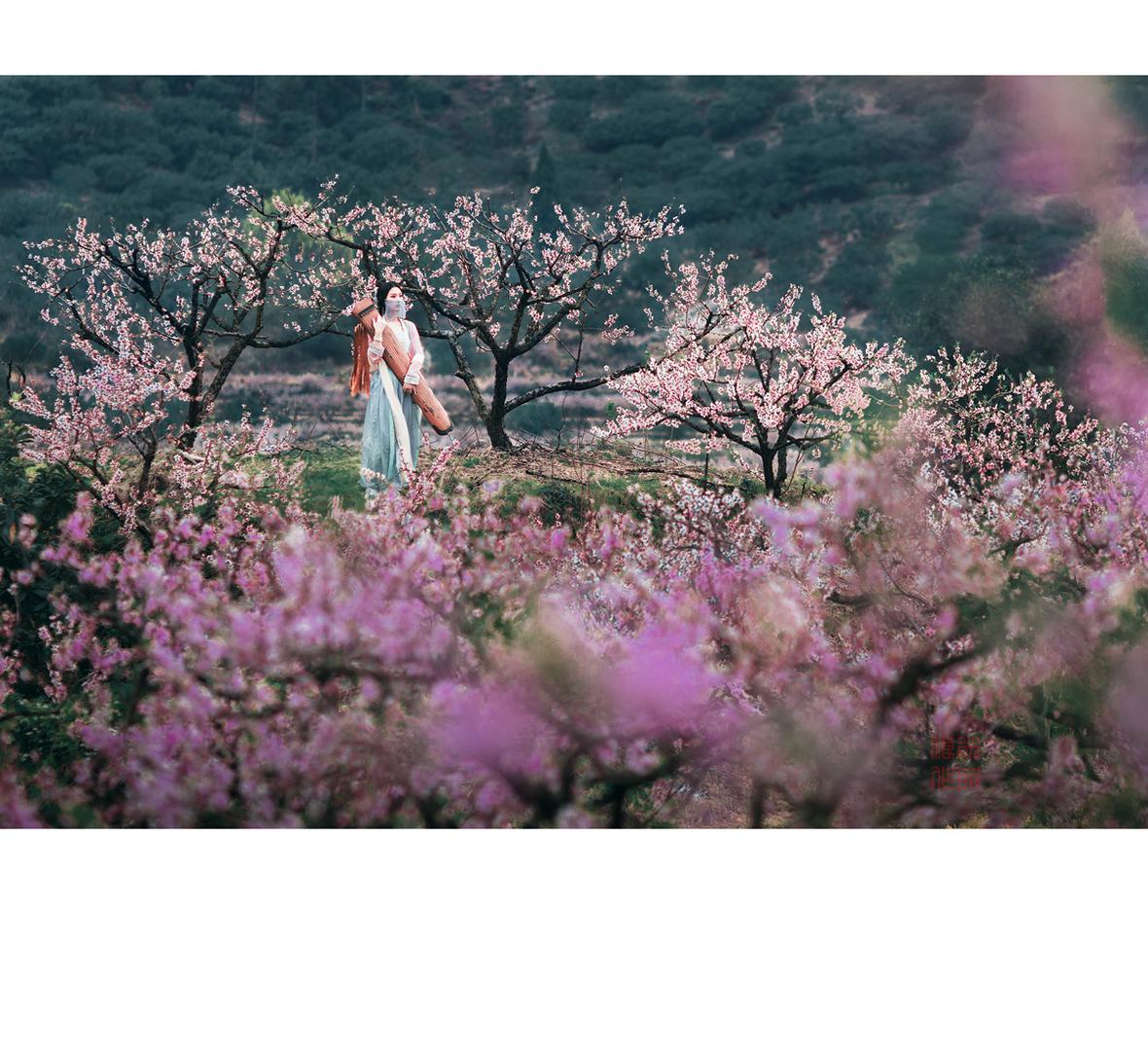 十里桃林,十里桃花,漫山遍野灼灼芳华,桃花笺,鸳鸯弦,落雨泠泠相似浅。