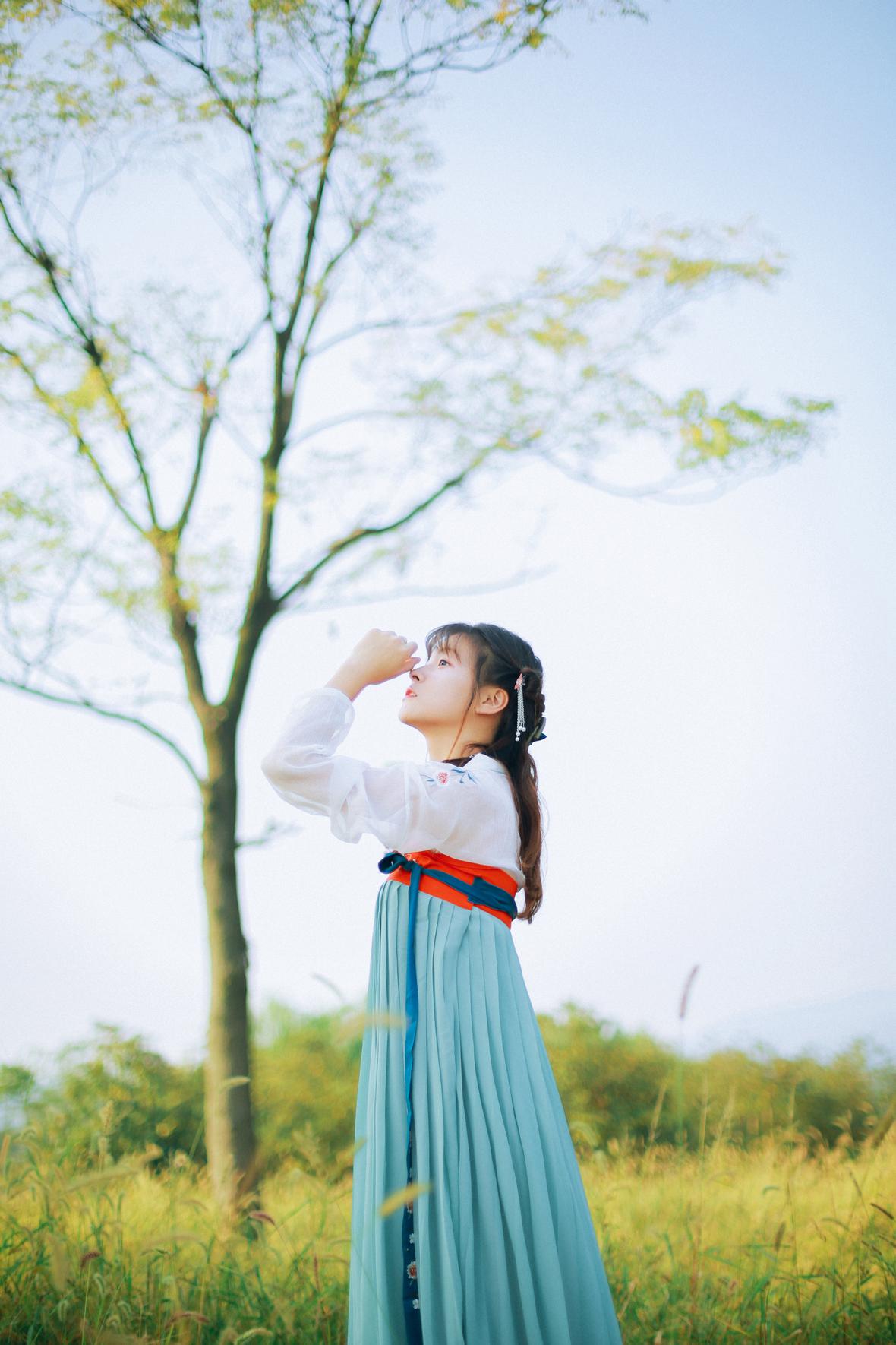 甜甜的笑,少女的样子。