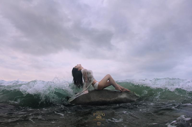 素颜,可以多睡半个小时。五点半在大堂集合,然后要沿着海滩徒步前往二十分钟路程以外的一处礁石区。六点钟太阳升出海平面,天边会有一片薄云,光线刚刚好。但也只能在太阳从那片薄云探出来之前拍,时间很紧,连拍了两天,第三天我实在是不好意思说再起大早,于是改在下午黄昏拍的。风大浪大是我事先就考虑到的情况,不过我要的正是这个效果,一直在用高速连拍捕捉精彩的画面。当然在惊涛拍岸的情况下,谁都无法端坐石端保持平衡,施忆佳不断的被大浪卷下来,然后再爬起来坐上去,非常的敬业。给我印象最深刻的是有次一个巨浪拍打过来,施忆佳整个人从礁石上被抛了起来,掉在两米外的沙滩上,刚中午说身上现在还有淤青,辛苦辛苦,真是太过意不去了。其实我的苦头也没少吃,身上七八条小伤痕是有的,这咱就不多说了,反正贝老师当年拍这个题材,相机进水,主板彻底烧掉了。第三次拍摄是在黄昏完成的,当日头落下,酒店里主办方为这次活动举办的晚宴已经开始,在大家觥筹交错之际,我跟施忆佳两个人从头到脚淋得象落汤鸡一样,满脚沙子跌跌撞撞行走在回酒店的路上。.....拍摄如此艰辛,如果我出不了片,相信施忆佳会杀了我;但画面尺度太大,出片的话黄师傅又会追杀我,那还是不要出了......不出吧,这次君澜五星酒店每天给每位大师们提供的独门独户前后两院,独用室外按摩浴缸游泳池,室内IPAD、IPOD免费使用,我要不出他们是不会放过我的,在征得施忆佳的首肯下,横竖都是一死,还是发出来吧......