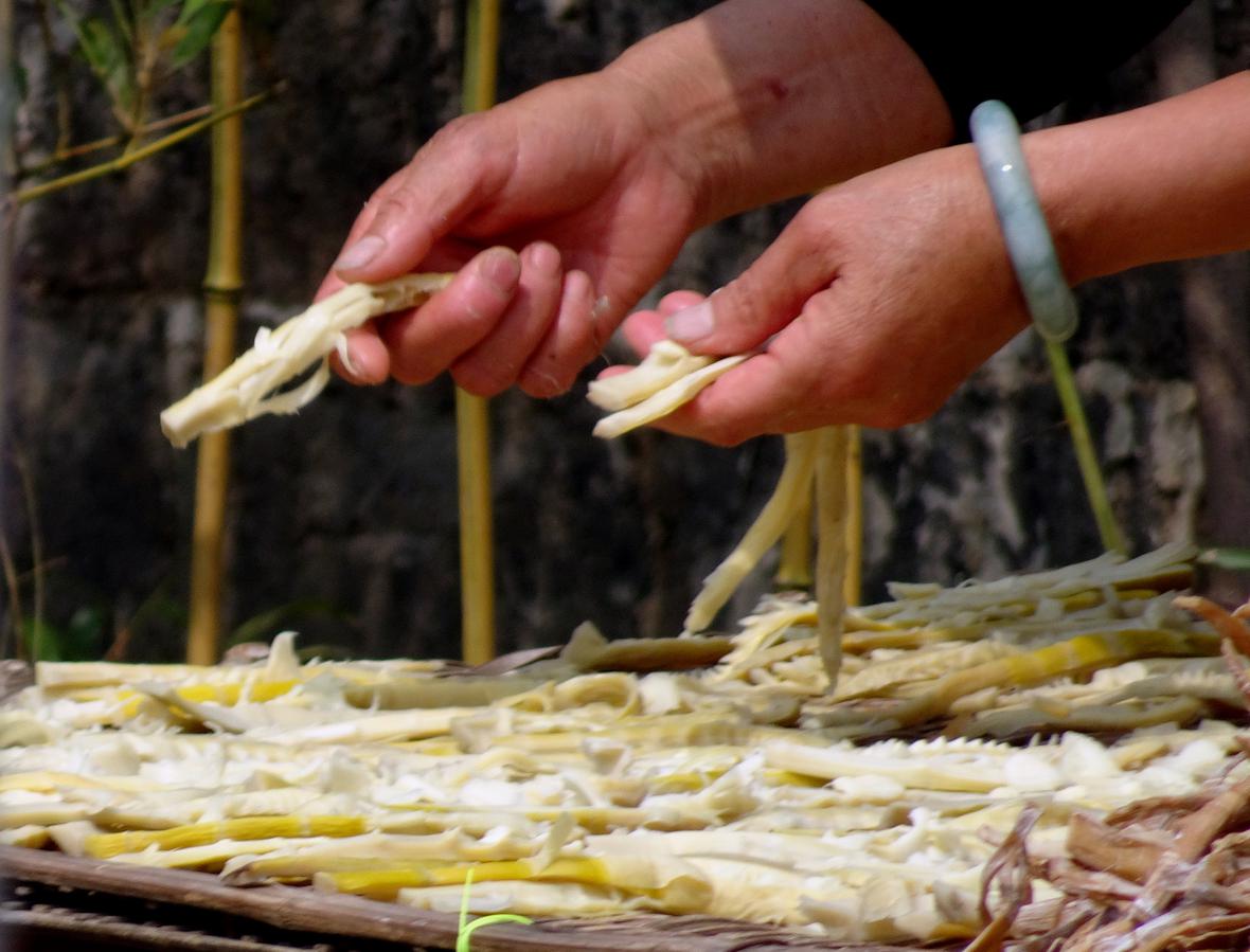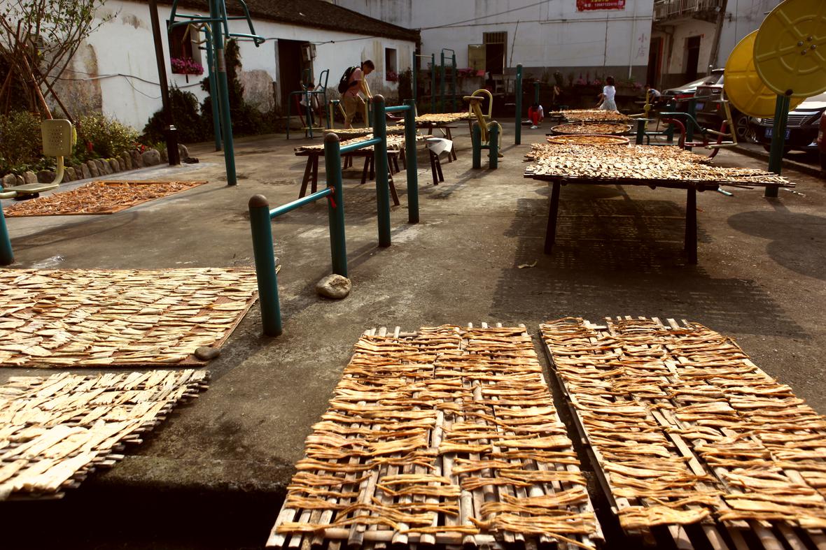 龙门古镇依然是孙权故里的发祥地,祖居的百姓生活传统依旧,旅游生活两不误。阳光下晒笋干,晾衣服,接地气。
