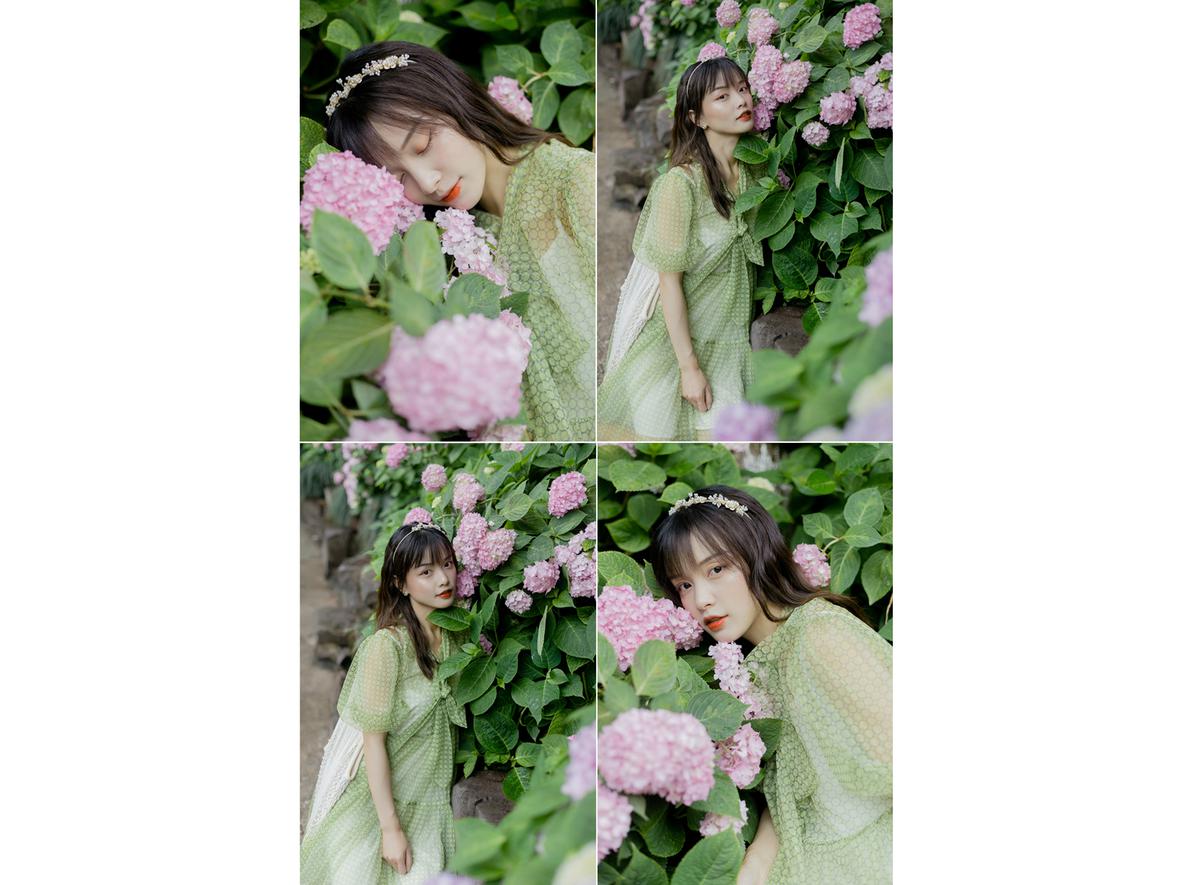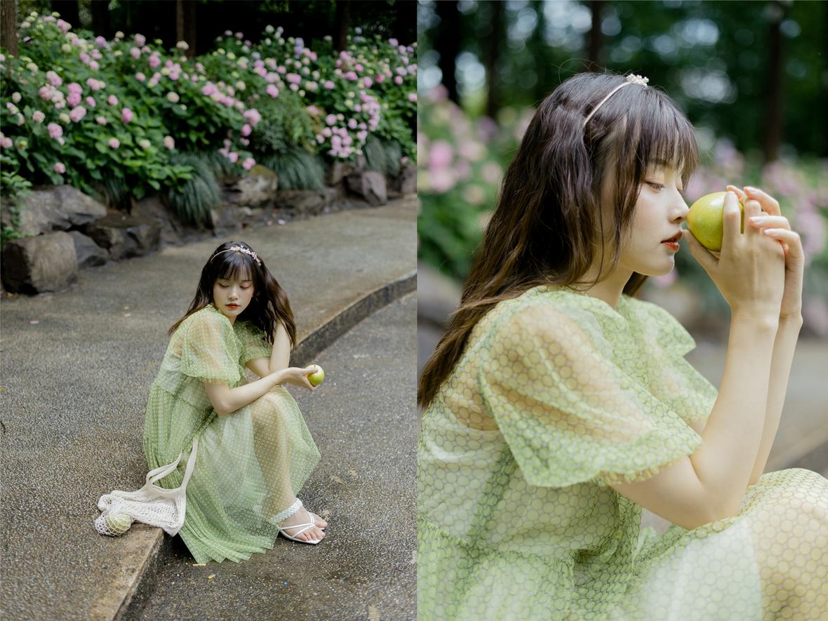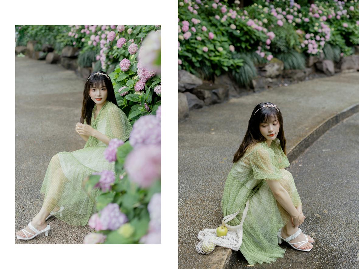 记得那天,小溪冒雨来找我,我们俩丝毫不顾细雨迷蒙,在绣球花初绽的城东公园拍照,她裙袂飞扬,站在花丛间,样子很好看。